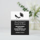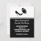 Faire-part de mariage sur le thème du football avec "Save the Date" réalisé en noir, gris et blanc. Des graphismes représentant un élégant talon aiguille noir frappant un ballon de football noir et gris, ornent la partie blanche supérieure de la carte. La partie inférieure de la carte est noire, avec une bande grise près du haut, et un texte blanc personnalisable avec vos informations de mariage. Un dos noir comporte un texte blanc descendant sur le côté gauche indiquant "Save The Date". De superbes faire-part "Save The Date" pour les couples fans de football.