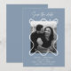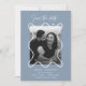 Sauver notre date. Cette carte de sauvegarde de date de photo de couple heureux dans un thème bleu poussiéreux moderne et fantaisiste, est parfaite pour l'annonce de votre célébration de mariage de votre jour spécial. Cette invitation de sauvegarde de date comprend une photo, et vous pouvez facilement modifier les détails de l'annonce de sauvegarde de date de votre mariage. Cette carte est également disponible en version numérique téléchargeable.