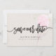 Cette création présente une douce fleur aquarelle rose derrière les mots "save the date" en gras, écriture manuscrite noire sur un fond de faux papier. Les noms des mariés et les détails du mariage sont affichés ci-dessous et peuvent être personnalisés. Graphiques ©Create The Cut