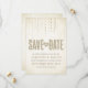 Cette charmante carte de mise en conserve de date par The Spotted Olive™ présente un joli fond doré mat avec une image de pierres précieuses scintillantes et les mots "Save The Date" typographiés de manière élégante et remplis d'une image de paillettes dorées. NOTE IMPORTANTE : CE DESIGN NE COMPREND QU'UNE IMAGE IMPRIMÉE DE PAILLETTES ; IL N'Y A AUCUNE PAILLETTE PHYSIQUE UTILISÉE OU INCLUSE ; IL N'Y A AUCUN EMBELLISSEMENT. CECI EST UNE INVITATION IMPRIMÉE PLATE. Copyright 2013-Présent | The Spotted Olive™ | Tous droits réservés