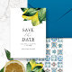 Imaginez la romance de l'Italie capturée dans nos annonces de mariage de destination exquise, ornée d'une charmante bordure supérieure de citrons aquarelles. L'allure d'Amalfi se retrouve à l'envers, où se déploie un motif de tuiles fascinant dans les tons bleu et rouille. Personnalisez ces belles cartes avec facilité, en utilisant notre modèle convivial pour ajouter vos détails spéciaux. Choisissez entre la commodité des cartes imprimées ou la flexibilité d'un imprimable enregistrer la date. Découvrez un monde d'enchantement, enregistrez les cartes de dates et les idées inspirantes sur www.zazzle.com/dotellabelle. Chaque design met en valeur l'aquarelle et le design uniques de Victoria Grigaliunas, faisant de votre faire-part une véritable pièce d'art.
