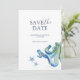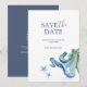 Ces annonces de mariage sur la plage personnalisées comportent une pieuvre d'aquarelle avec étoiles de mer dans les nuances nautiques de bleu. Les mots "Save the Date" sont définis dans une élégante typographie. Utilisez les champs modèle pour do-it-yourself vos informations personnalisées. Un choix unique pour les cartes de mariage côtier. Pour voir la collection complète, visitez le www.zazzle.com/dotellabelle Unique aquarelle art et design de Victoria Grigaliunas de Do Tell A Belle.