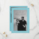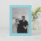 Mariage moderne enregistrez la carte de date avec un design simple mais élégant avec vos détails sur votre photo verticale préférée, à l'intérieur d'une double bordure. Le thème de couleur est aqua / turquoise / turquoise et peut être modifié dans l'outil d'édition de design. La palette de couleurs vives rend ce design parfait pour un mariage tropical ou de plage au printemps ou en été.