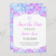 Les tons rose, lavande et bleu aqua hortensia fleurs et l'étoile de David décorent cet élégant Bat mitzvah d'aquarelle Enregistrer la carte Date. Cette conception comporte une bordure florale en haut et en bas. Vos détails de célébration peuvent être personnalisés dans une typographie de script moderne en rose et gris. Le dos de la carte a un motif de fleurs assorties. Conçu par l'artiste ©Susan Coffey.
