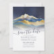 Save The Date Aquarelle Blue Gold Foil Mountain Mariage extérieu