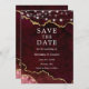 Elégante aquarelle moderne Bourgogne et or Marbre Agate Geode Enregistrer la carte de date avec des lumières à cordes