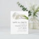 Avec une élégance simple et moderne, ce mariage floral sauvegarder la carte date a deux beaux lys blancs aquarelle au-dessus de votre texte. Le dos de la carte a un modèle photo pour télécharger votre photo désirée à la place de l'exemple d'image montré. Personnalisez le modèle texte facile à utiliser avec vos détails.