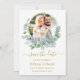 Cadre photo Rond et Élégant Moderne Enregistrer La Date Couple Photo Mariage Faire-part Card - Aquarelle Eucalyptus Feuilles sur un Cadre Or. Script Gold.