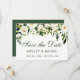 Aquarelle Floral Vert et Blanc Enregistrer la date Carte Fiançailles Vert Retour - Green Script