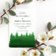 Pins boisés rustiques dans des tons verts aquarellés. Modèle photo via Pixabay sous licence CC0 et doit être remplacé par votre propre photo