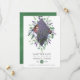 Cartes de photo "save the date" de mariage avec feuille verte et dollars en argent et lavande, conçues pour être rapidement et facilement personnalisées selon vos spécificités.
