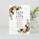 Elégant Aquarelle Mixte Floral Enregistrer La Date Fiançailles Faire-part Mariage Carte comprend des roses bordeaux, roses roses, roses rouges, fleurs bleues, tournesols et verdure botanique sur un cadre doré.