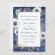 OEuvre d'aquarelle moderne avec un beau cadre de fleurs d'anémones, d'étoiles de mer, de bourgeons et de brindilles. Combinaison de polices élégante. Blanc, bleu foncé, or (pas d'or réel mais de couleur). Cadre d'ondes d'aquarelle bleu foncé. Parfait pour une élégante mariage moderne, mariage fleurie.