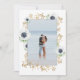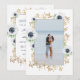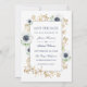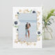 OEuvre d'aquarelle moderne avec un beau cadre de fleurs d'anémones, d'étoiles de mer, de bourgeons et de brindilles. Combinaison de polices élégante. Blanc, bleu foncé, or (pas d'or réel mais de couleur). Photo personnalisée dans le même cadre sur le côté arrière.