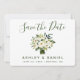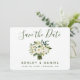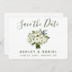Aquarelle moderne Bouquet vert et blanc floral Enregistrer la date Carte Fiançailles