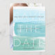 Cette carte de date moderne enregistre trois traits de brosse à aquarelle dans l'effet bleu ombre. Customisez ceci enregistrer la carte de date avec vos détails et une photo au dos pour une unique enregistrer la date. Parfait pour un mariage à la plage, un mariage nautique ou un mariage de destination.