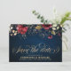 Elégant et moderne mariage romantique aquarelle floral enregistrer les cartes de date dispose d'un bouquet de bordeaux / marsala, rose rousse, violet, roses d'aquarelle pêche avec feuillage assorti sur arrière - plan bleu marine. Parfait pour un mariage d'automne/mi-été. S'il vous plaît trouver d'autres modèles et variantes de mon magasin "blissweddingpaperie". Et n'hésitez pas à me contacter pour plus de personnalisation ou de correspondance d'éléments
