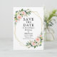 Elégant Aquarelle rose Blush Roses et Fleurs blanches Enregistrer La Carte Faire-part Mariage Date comprend la verdure botanique sur un cadre géométrique or. Retour vert.