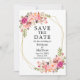 Elégante aquarelle rose Blush Floral Enregistrer la date Faire-part Mariage Carte inclut roses roses et verdure botanique sur un cadre géométrique or.