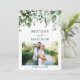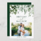 Aquarelle moderne Elégante Botanique Verdure Fiançailles Mariage Enregistrer La Carte Date comprend des feuilles de lierre, de fougères et de sauge. Photo Couple. Arrière - plan vert.