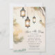 Les Lumières De Lanterne Botanique De L'Arbre Rustique Sauvegardent La Carte Date. Belle aquarelle élégante design mariage avec lanternes botaniques rustiques suspendues. Ce design mariage moderne et personnalisé peut être facilement personnalisé avec vos propres détails de mariage.