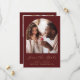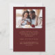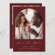 Cette simple et minimaliste carte Save the Date présente une arche photo boho au-dessus des mots "Save the Date" dans un élégant script d'écriture dorée, suivi des noms du couple, date mariage et ville en sans serif police sur un arrière - plan rouge bordeaux. Ajoutez une seconde photo horizontale et un message plus détaillé avec des informations supplémentaires sur l'inverse.
