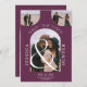 Arc boho moderne 4 photos mariage violet et blanc enregistrer la date. Un aménagement simple et minimaliste cool à l'ambiance désert bohème. Parfait pour les mariages décontractés en plein air.