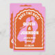 Notre carte minimaliste et audacieuse de style rétro mariage de sauver la date est parfaite pour le couple branché qui aime se lever et faire une déclaration audacieuse. Notre design est doté d'un combo de couleurs vives rose-orange. Une simple forme d'arc ondulé abstraite crée une apparence audacieuse avec la date mariage affichée audacieusement en gros caractères blancs. Le revers de la photo comprend une mise en page complète avec un monogramme gras et une adresse de site mariage en option pour couple