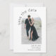 Belle simplicité et style boho artistique font de ce mariage d'arc moderne enregistrer la carte de date pop avec charme. Il dispose d'un modèle photo en forme d'arc sur le devant de la carte pour télécharger votre photo désirée. Il y a un modèle texte sur le devant de la carte pour personnaliser avec les noms de la mariée et du marié et la date de mariage prévue. Le dos de cette carte contient un exemple de message avec des détails supplémentaires à personnaliser, ainsi qu'un modèle de code QR pour faciliter la consultation de votre site mariage. Montrée ici avec un arrière - plan blanc clair, cette carte est également disponible en d'autres couleurs.