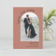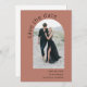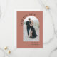Belle simplicité et style boho artistique font de ce mariage d'arc moderne enregistrer la carte de date pop avec charme. Il dispose d'un modèle photo en forme d'arc sur le devant de la carte pour télécharger votre photo désirée. Il y a un modèle texte sur le devant de la carte pour personnaliser avec les noms de la mariée et du marié et la date de mariage prévue. Le dos de cette carte contient un exemple de message avec des détails supplémentaires à personnaliser, ainsi qu'un modèle de code QR pour faciliter la consultation de votre site mariage. Montrée ici avec un arrière - plan terreux en terre cuite, cette carte est aussi disponible en d'autres couleurs.