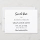Une photo Enregistrer la carte de date pour une fête de remise de diplômes. Sur le devant : Ajoutez votre propre photo verticale du diplômé. Cadre d'arc photo. Un arrière - plan blanc chic, du texte noir. Modèles pour un nom et une date. Le nom et le texte : Save the Date sont écrits avec un script de style manuscrit moderne. Avec un casquette, garnir de bon goût. Retour : détails de la fête.