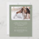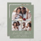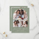 Cette simple et minimaliste carte Save the Date présente un colage de 3 photos au-dessus des mots "Save the Date" dans un élégant script d'écriture manuscrite blanche, suivi des noms du couple, de la date mariage et de la ville en caractère sans serif sur un arrière - plan vert sage. Ajoutez une quatrième photo horizontale et un message plus détaillé au dos.