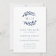 Ardoise Bleu Olive Branche Monogramme Wreath Blanc Mariage Enregistrer la date... Notre minimaliste branché Save the Date présente une couronne monographique en silhouette bleu ardoise de branches d'olivier sur un arrière - plan blanc immaculé suivi d'un texte d'invitation dans une typographie serif et sans serif élégante pour une invitation simple et chic Save the Date. Le dos de la carte contient les informations de votre site Web mariage et un exemple de code QR graphique que vous pouvez remplacer en entrant simplement votre propre URL de site Web mariage sur le modèle. Le code QR et l'exemple de texte des deux côtés de la carte peuvent être facilement révisés étape par étape avec vos propres détails sur le modèle de personnalisation.