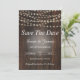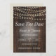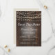 Les invitations Save The Date ont un arrière - plan en bois, des lumières élégantes et du texte blanc. Ce sont de belles invitations Twin Spirit Designs à envoyer à vos invités, et tout le texte est personnalisable. Profitez de cette occasion pour créer un événement unique et mémorable avec nos invitations personnalisables.