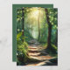 Forêt enchantée Sauvegardez la carte Date avec un chemin ensoleillé dans une forêt avec des lumières scintillantes. Sur le dos est l'espace pour votre photo personnalisée. Cette carte est conçue dans le cadre d'un ensemble avec recouvrement de vellum.