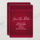 Mariage enregistrer la carte de date avec un arrière - plan rouge décoré avec des tourbillons élégants et des motifs ornementaux le long des frontières.