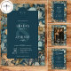 Offrez-vous l'enchantement du passé avec notre mariage floral vintage, enregistrez les cartes de date. Inspirées par les créations emblématiques de William Morris, ces invitations présentent un mélange fascinant de teintes vintages - blues turquoises profondes, tans doux, dorés et crèmes. Les motifs floraux complexes, qui rappellent l'époque Art Nouveau, dégagent une touche d'obscurité, ajoutant une allure mystérieuse à votre journée spéciale. La zone de texte turquoise foncé, ornée d'un élégant script vintage, offre un contraste saisissant par rapport à la riche toile de fond florale. Ce design intemporel capte l'essence du romantisme classique, ce qui en fait le choix idéal pour les couples à la recherche d'une invitation unique et inoubliable. Créé par Simply Farmhouse Press.
