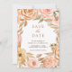 Éblouissez vos invités avec cet élégant enregistrer la date avec de belles fleurs et feuilles rustiques avec typographie moderne. Ajoutez simplement les détails de votre événement sur ce modèle facile à utiliser pour en faire une carte unique de sauvegarde de la date.