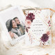 Ce mariage élégant, sauf l'invitation date, comprend une couronne de fleurs d'aquarelle de dahlias, roses de jardin, et pivoine en rouge bordeaux, marron, rose rousse sur les feuilles d'automne avec une photo sur le dos. Pour une personnalisation plus avancée de cette conception, cliquez sur le BOUTON OUTIL DESIGN BLEU. Des articles correspondants sont également disponibles.