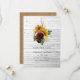 Automne - Faire part de mariage rustique en automne dans une grange à la campagne avec des roses bordeaux et blanches et des tournesols avec une touche de coton. Idéal pour tout thème ou mariage champêtre.