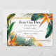 La carte Birds of Paradise Bliss Horizontal Save the Date est un faire-part visuellement époustouflant qui apporte une touche d'élégance tropicale à votre prochaine célébration. A l'avant, tous les détails essentiels occupent le devant de la scène dans un décor vibrant d'oiseau de fleurs de paradis, de feuilles verdoyants et de lignes droites délicates. Les noms du couple, la date significative et la belle situation sont soigneusement disposés horizontalement. En haut de la première page, une douce ligne ajoute une touche de fantaisie : "L'amour est dans l'air, et nous voulons que vous soyez là." En se tournant vers l'arrière de la carte, contre un arrière - plan orange chaud et chaleureux, une disposition horizontale se déroule. Sur le côté droit, une photo de couple chéri prend le devant de la scène, capturant un moment d'amour et de connexion. Sur le côté gauche, un espace de texte personnalisable invitation le couple pour ajouter une touche personnelle, exprimant peut-être leur enthousiasme ou partageant un teaser sur la célébration à venir. Cet espace est une toile pour la voix unique du couple, ajoutant un élément personnalisé à la carte Enregistrer la date. En résumé, la carte Birds of Paradise Bliss Horizontal Save the Date est un mélange harmonieux de détails essentiels, de beauté tropicale et de personnalisation. L'avant captive par son design dynamique et son doux sentiment, tandis que l'arrière, sur fond orange brûlé, dispose d'une photo et d'un texte personnalisé chéri, créant un faire-part unique et visuellement attrayant pour votre journée spéciale.