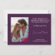 La carte horizontale Save the Date, qui fait partie de la "Fuchsia Enchantment : Watercolor Mariage Suite", présente un front captivant avec un décor luxuriant de fleurs fuchsia et de lierre, créant une tapisserie enchanteresse. Les riches teintes de bordeaux et de violet forment un cadre botanique autour des noms du couple, date significative et lieu de célébration sur le devant, donnant le ton d'une histoire romantique. En retournant vers l'arrière, un arrière - plan bordeaux sophistiqué prend le devant de la scène. Sur la gauche, une photo chère du couple met la carte en valeur, capturant un moment de joie partagée. Sur la droite, un espace bien organisé accueille tous les détails essentiels, y compris un message personnel ou des informations complémentaires. Cette conception réfléchie assure un mélange harmonieux d'allure visuelle et de fonctionnalité. La "Fuchsia Enchantment : Watercolor Mariage Suite" Save the Date card invitations invités à partager l'histoire d'amour du couple, promettant une célébration remplie d'élégance et d'enchantement botanique.