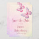 Notre papillon rose QR Code Baby shower Enregistrer la date est une façon élégante de célébrer et de partager votre événement joyeux. Cette invitation est un étonnant arrière - plan pastel aquarelle et de beaux papillons colorés. Il est parfait pour le printemps ou l'été. Imaginez n'importe quel baby shower à thème extérieur et jardin. Customisez facilement avec votre code QR unique qui oriente vos invités vers toutes les informations de votre douche