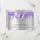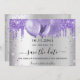 Un arrière - plan faux argenté décoré de parties scintillant et de ballons violet, couleur lavande. Personnalisez et ajoutez une date et un nom/âge. Le texte : Save the Date est écrit avec un grand script de style à la main tendance.