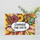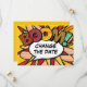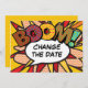 Personnalisez avec vos noms et détails pour annoncer le changement de date de votre événement spécial. Thème de pop art de bande dessinée, design moderne et rétro amusant, parfait pour les mariages, les douches de mariée, les douches de bébé, les baptêmes, les fêtes de fiançailles, les célébrations d'anniversaire, les remises de diplômes, les fêtes d'anniversaire et autres événements spéciaux tout au long de l'année ! Un design cool, tendance et amusant qui met le boum zap pow dans votre journée. Conçu par Thisisnotme©