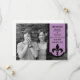 Bannière moderne et simple Fleur De Lis Enregistrer la Date Annonces en violet avec une bannière en bordure de pétoncle ornée d'une flamme damassée chic. Cette invitation à enregistrer la date élégante est parfaite pour annoncer votre mariage élégant. Facile à customiser, il suffit d'ajouter une photo de couple mignonne et vos détails mariages dans les champs de texte fournis. Cliquez sur "Customiser" pour trouver d'autres options de personnalisation.