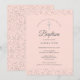 Une élégante invitation de baptême ou de bapteme à conserver précieusement avec de délicates étoiles argentées. Vous pouvez personnaliser avec les détails de votre célébration de baptême ou de bapteme en typographie chic sur fond rose blush. Conçu par Thisisnotme©