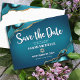 Assurez-vous que tous vos amis et proches pourront célébrer le Bat Mitzvah de votre fille, un événement marquant ! Envoyez cette carte d'annonce « Save the Date » personnalisée, moderne et unique. Une typographie blanche et une étoile de David en faux or se superposent sur un fond ombré bleu turquoise profond avec de l'agate bleu turquoise accentuée de veines en faux or. Votre message personnalisé et de l'agate bleu turquoise supplémentaire sur fond blanc ornent le verso. Personnalisez le texte avec le nom de votre Bat Mitzvah, la date et votre message personnel. Garantie d'ajouter une touche de style amusant à son occasion spéciale !