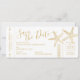 Elégante étoile d'or sur une carte d'embarquement thème voyage rétro billet d'avion enregistrer la carte de date parfaite pour un mariage de destination de plage ou un mariage tropical à l'étranger. Une typographie élégante et une illustration rustique d'étoiles de mer mettent en avant la carte de datation avec beaucoup d'espace pour ajouter des détails de voyage pour vos invités. Autres styles et thèmes disponibles dans la Boutique de concepteurs Zazzle de papier personnalisé.