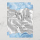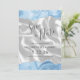 Les bords supérieur et inférieur de ce mariage moderne élégant, à l'exception de la carte de date, disposent d'une bordure pastel couleur d'aquarelle bleu bébé ornée d'une parties scintillant en faux argent. Le texte personnalisable combine écriture grise au charbon de bois et polices sans serif sur une image arrière - plan de soie blanche ou de satin. L'envers est assorti d'une agate bleu pastel et d'une soie blanche.